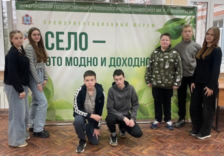 • 5 декабря, обучающиеся 9 класса МБОУ Елизаровская СШ, посетили профориентационный форум аграрных классов "Село это модно и доходно!", который проходил на базе Нижегородского ГАТУ им. Л.Я. Флорентьева.