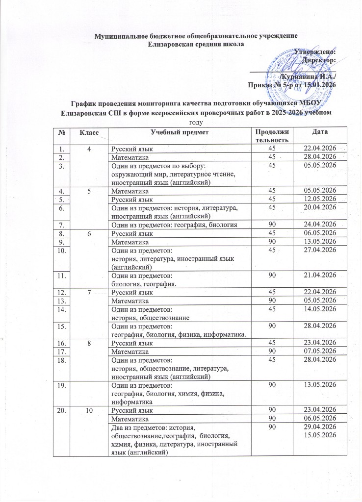 Елизаровская СШ в форме всероссийских проверочных работ 2025-2026 учебном году